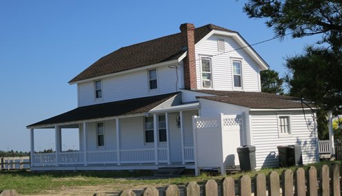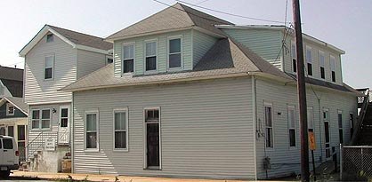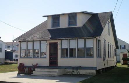 The larger house was built by George Erbe in 1905. It was built from a very hard wood called Carolina Lumber. The lumber was brought into Strathmere by horse and wagon by way of Sea Isle. Mr. Erbe lived in Philadelphia and ran a bar there. He later retired to Strathmere. He also later built the 2 smaller homes next to this one. He raised homing pigeons as a hobby, and they were kept near the front corner of the larger house.