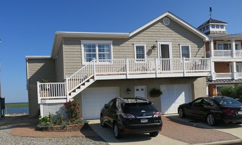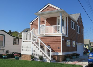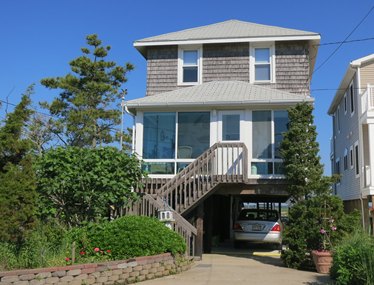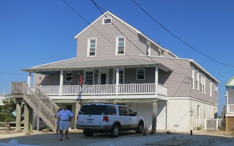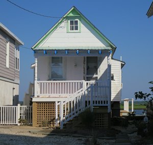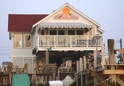 Mazzeo's House on the bay - before and after raising and renovating- The mural painted on the bayside of this house was created by lifelong Strathmere resident & artist Mike McNally |