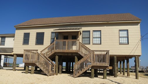 He also built a large beachfront house, which was moved inland a little after the hurricane of 1944. The new photo shows the back views of the houses. These two homes were recently demolished. The 3rd house was also built by Mr. Erbe. Of the 3 homes, it's the only still standing on the bay. |