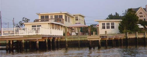 Jim and Betty Panunto, started coming to Strathmere in the early 1940's. They bought the May's Boat Yard in the late 40's and built the Bayview Motel in it's spot on the bay. The Bayview Motel - For history & vintage photos check out The Panunto Family History The 2nd photo was sent to the website by Lori Barnes. Lori says - "Miss the Bayview now that it is gone, gone, gone. This is 1975, my mom – Linda Weaver (now Mathewson), me (Lori Weaver Barnes) and my sister (Holly Weaver) on our annual two week vacation at the shore. I learned to swim in that pool and loved buying penny candy from Mrs. Pinunto in the hotel lobby. Good times" The bay view was torn down in recent years and a private home now stands in it's place. |