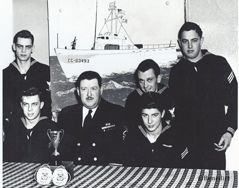 ![]() ![]() He was stationed at the Corson Inlet Coast Guard Station from 1950 to 1954. ![]() Crew members of the Corson Inlet Coast Guard Station 1952 & 1953. Back row - Donald Ellis, unknown, Joseph Goodwin, William Benedict, Chief Louis E. 'Slim' Taylor Officer in Charge. Front Row - Frank Parker, unknown, Aldan Dailey, (?) Pittman, P. Ford. ![]() This group of Coast Guardsmen at the Corson Inlet Station are shown receiving recognition for 'Helpfulness and Kindness' shown to a summer resident in 1951, from Mr. and Mrs. Ray Hall White. Left to right are : Frank Parker, William Benedict, Chief Louis E. 'Slim' Taylor, Joseph Goodwin, Aldan Dailey and Donald Ellis. The scene in the background was painted by William Benedict. ![]() Corson Inlet Coast Guard Station in May of 1951. Take note of the dog kennel building left from WWII, when they used dogs to patrol the beaches.