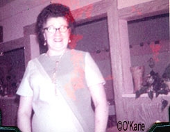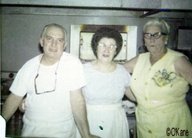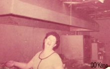In the Winter of 1942-43, a group of volunteer women gathered in a room at the McCullough's home at the corner of Sherman & Commonwealth to roll bandages for the Red Cross. Back row left to right they are: Delphine McCullough Quinn, Mrs. Wolf Miller, Mrs. Al May and the Dr.'s wife Mrs. Dillenburg. In the front from the left are: Florrie Andress, Catharine McCullough and Mrs. George McGauhey (Marge) The following group of photos were taken in Mildred's Restaurant in the 1960s. Delphine McCullough Quinn kept the books for Mildred's from the time she first opened.