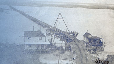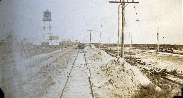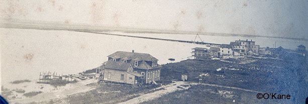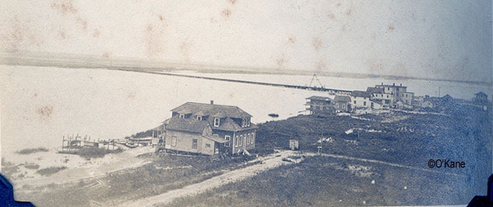 Early Strathmere photos from Pete O'Kane - page 3 of 5 A photo from 1910, taken from the old water tower. It's a great old bay view with only a few houses - including two built by George Erbe, the Whelen Inn and the old railroad bridge that brought the West Jersey/Pennsy train through Strathmere. The West Jersey train station was near the West Jersey Cottage. Click image for larger view. Below is another great shot taken from the water tower, from 1910. This shows the Reading Railroad bridge coming across the bay into Strathmere. To the left is the Stevens house and on the right is the bridge tender's house. This bridge was removed near the end of the 1920s. It used to come into town right about where Twistie's stands now. Click image for larger view. Excellent 1910 photo from the center of the island looking north . Click on the image for a larger view and you can see both sets of railroad tracks and on the far right is the track for the trolley that used to run from Strathmere to Sea Isle City. There's that old water tower again.