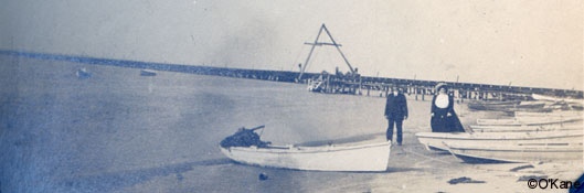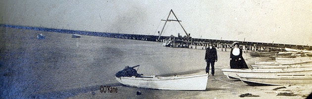 On the bay, looking north with the PRR bridge in the background, near the West Jersey Cottages.The photo was taken around 1915 and it appears to be Mrs. McCullough and an unidentified man. Click image for larger view.