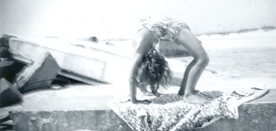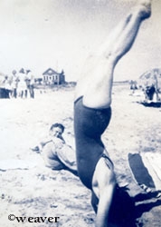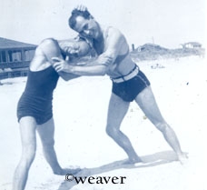 Some 1938 beach shots. Al McCullough and ? - Nancy does a handstand on the beach - Del & Jean.