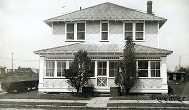 Joe & Bish McFadden with goddaughter Sue Johnson, next to the McCullough home on Sherman, with the Weaver's house in the background.