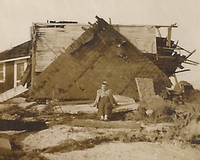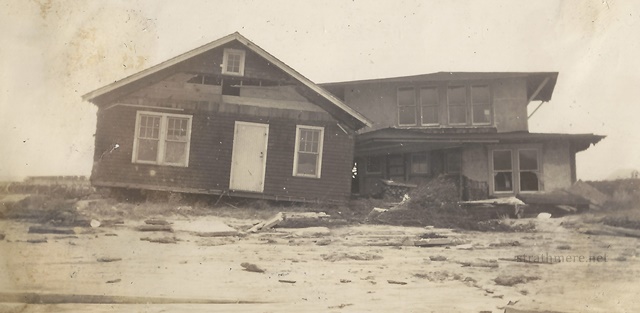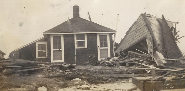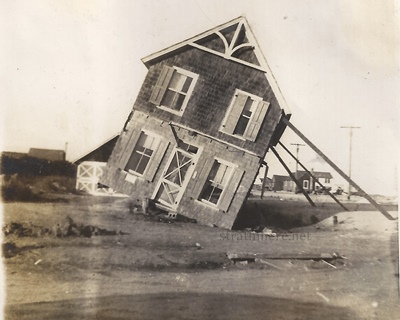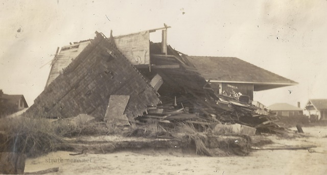 The house with the 4 windows and the roof supports was rebuilt, and then collapsed for good in the 1962 storm.