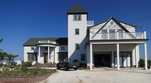 The larger house was built by George Erbe in 1905. It was built from a very hard wood called Carolina Lumber. The lumber was brought into Strathmere by horse and wagon by way of Sea Isle. Mr. Erbe lived in Philadelphia and ran a bar there. He later retired to Strathmere. He also later built the 2 smaller homes next to this one. He raised homing pigeons as a hobby, and they were kept near the front corner of the larger house.
