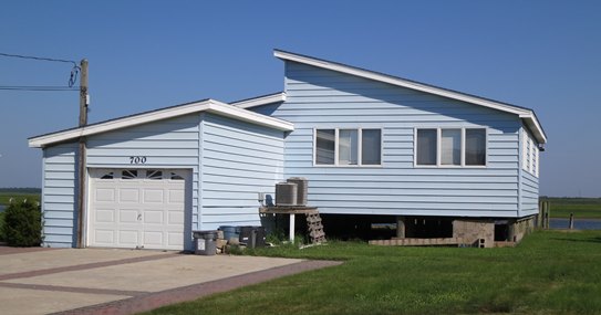 Mazzeo's House on the bay - before and after raising and renovating- The mural painted on the bayside of this house was created by lifelong Strathmere resident & artist Mike McNally |